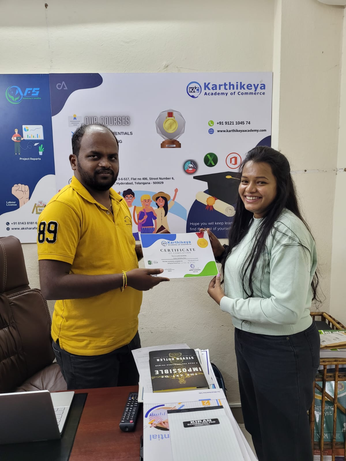 Welcome to Karthikeya Academy of Commerce, an organization whose roots are emanated out of passion and with an idea of delivering quality education to Finance & Accounting aspirants in a student friendly learning environment. Our goal is to deliver certified Tally Professionals to the Private, Public & Govt. Sectors in order to clear unemployment gap from Finance & Accounting industry. At KAC, every student is special and I on behalf of my esteemed qualified team can assure you of great learning experience here.
